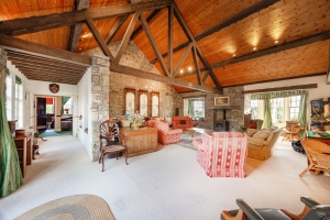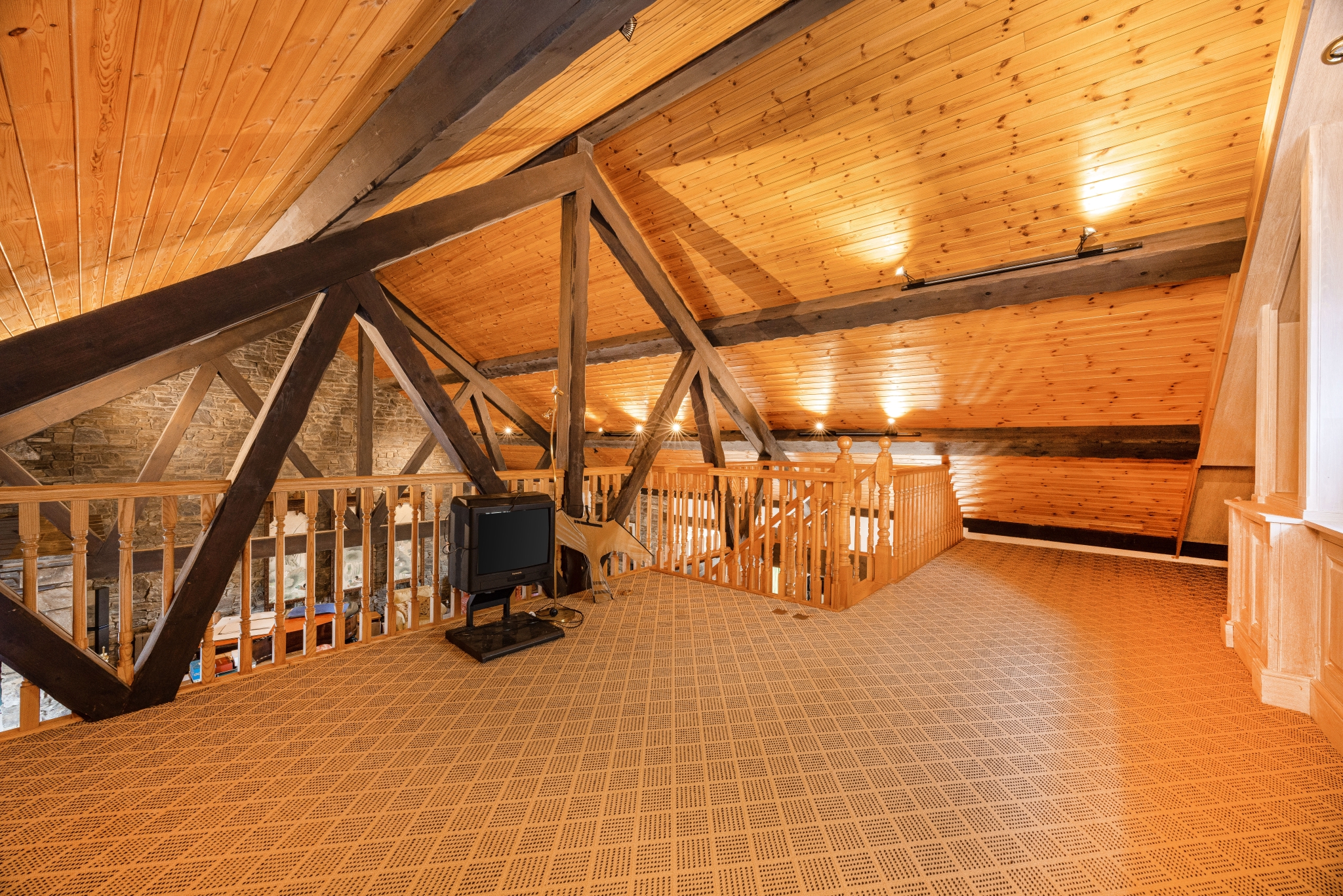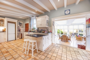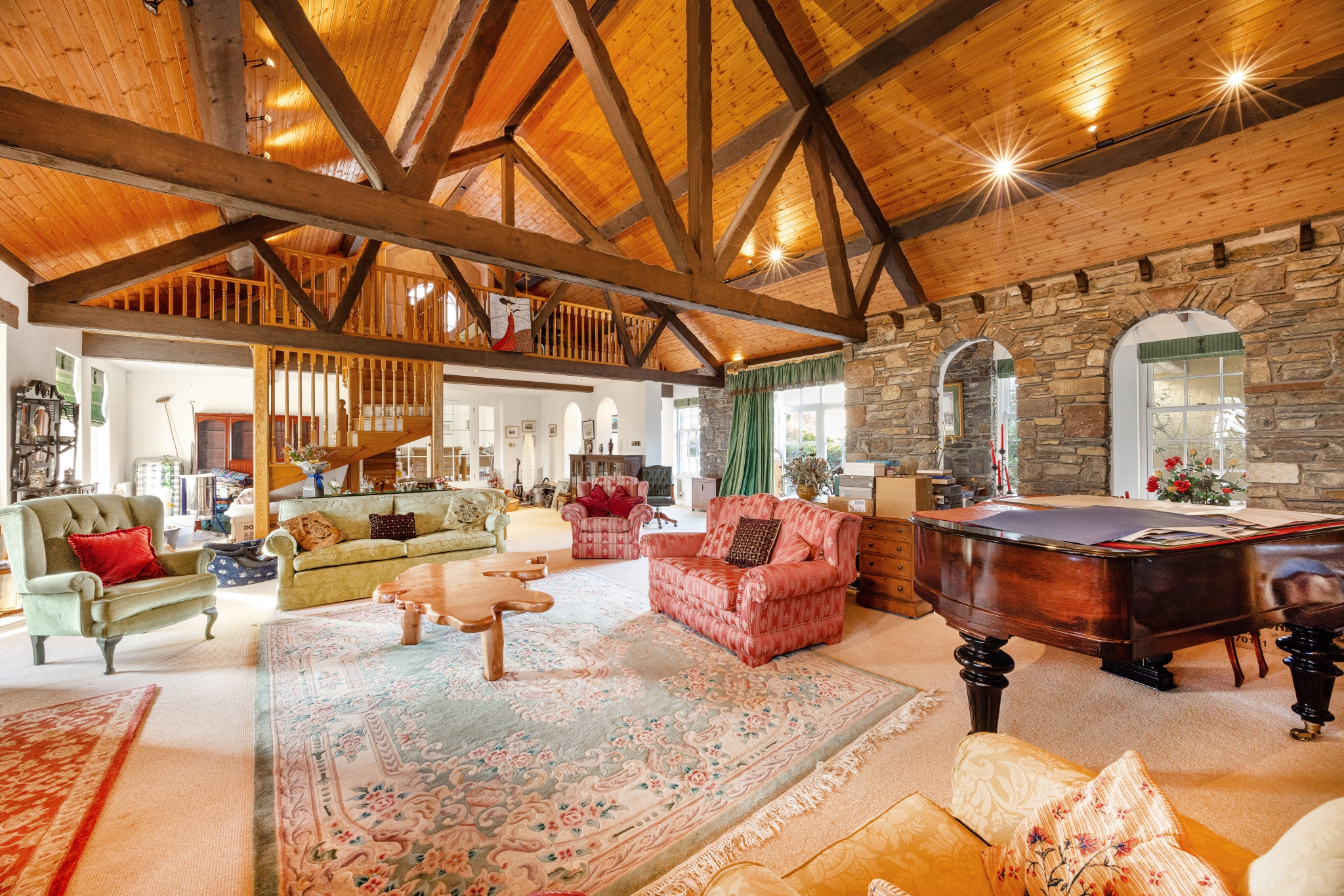 The kitchen is fitted with a comprehensive range of shaker style solid wood units with an Aga that creates a focal point in this room. From the conservatory there is access to the large family room with stairs leading up to a beautiful gallery. This room has stunning vaulted ceilings, a large bay window which over looks the front gardens