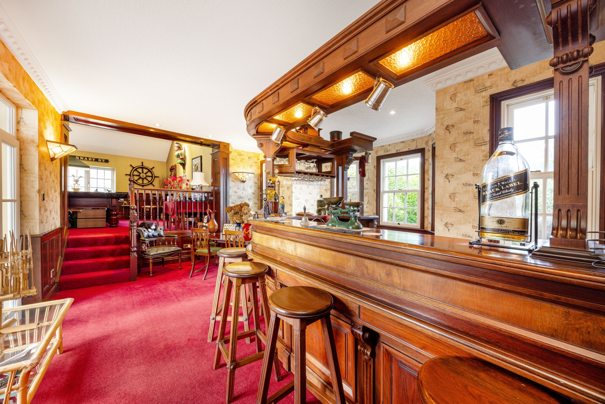 A second entertaining suite can be accessed from the family room via an inner hallway which features a billiard/ snooker room and bar, together with a set of double doors that lead out to the rear courtyard garden.